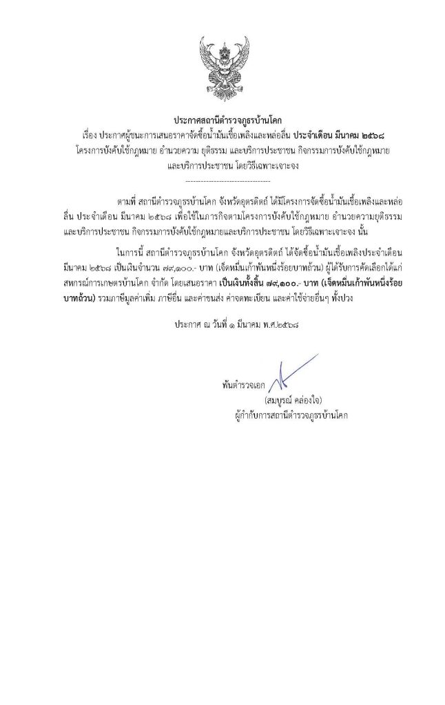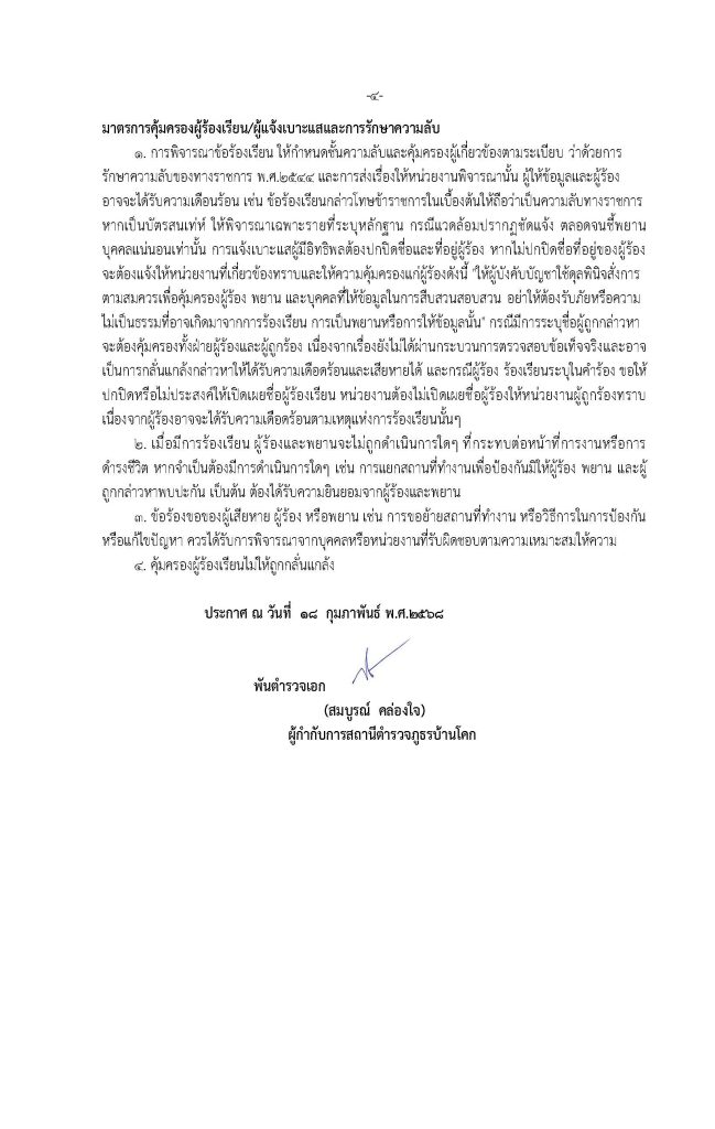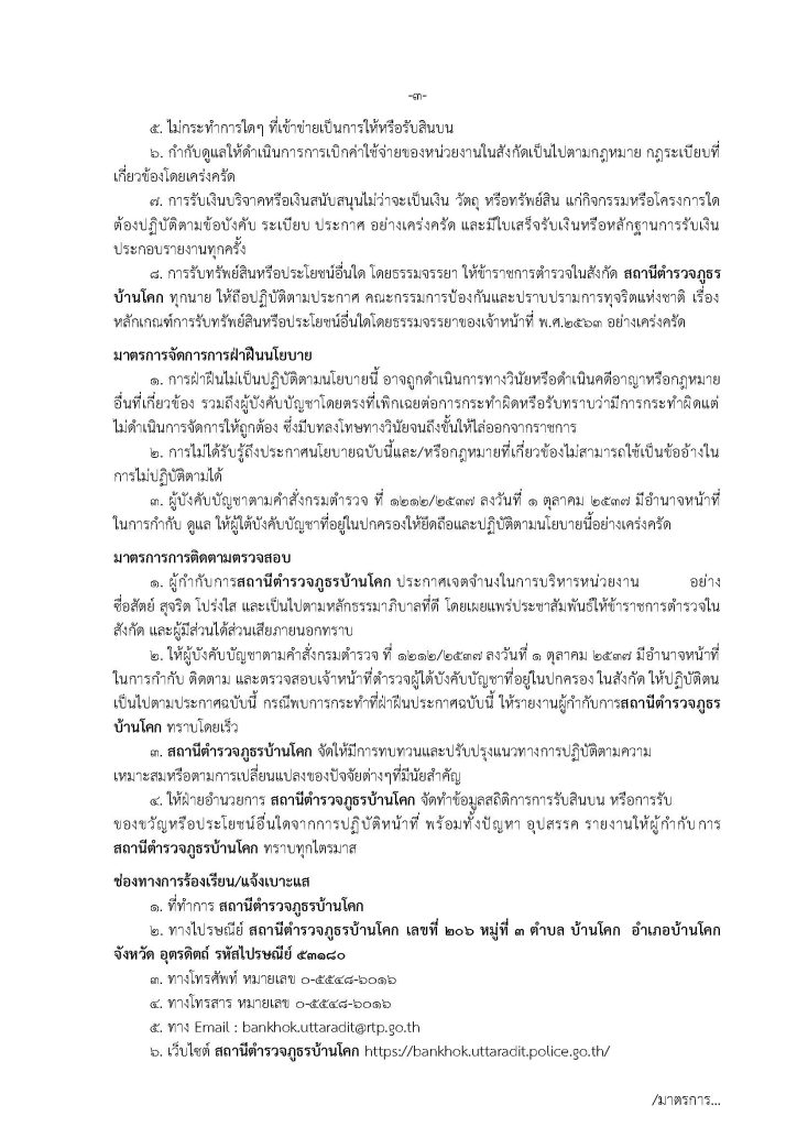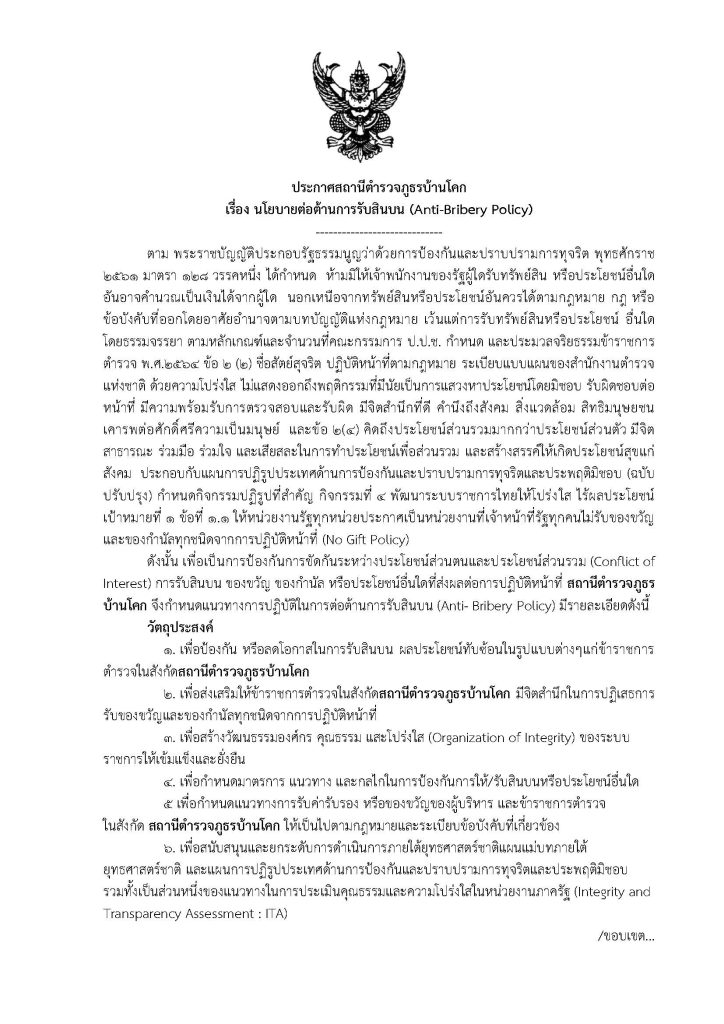 ประกาศสถานีตำรวจภูธรบ้านโคก เรื่อง นโยบายต่อต้านการรับสินบน (Anti-Bribery Policy)