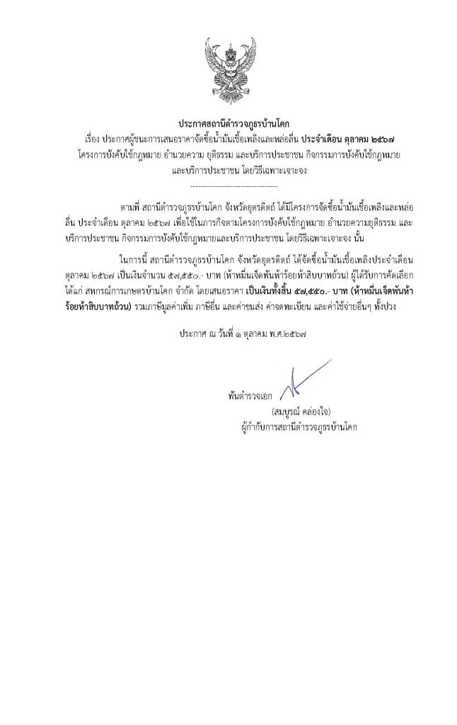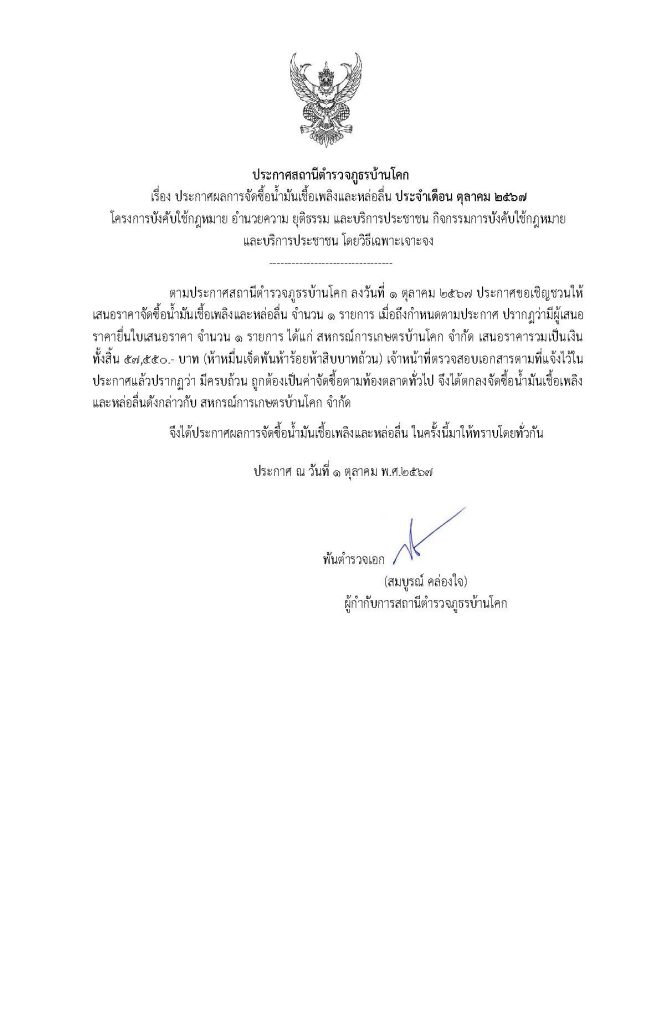 ประกาศการจัดซื้อจัดจ้างประจำเดือน ตุลาคม 2567