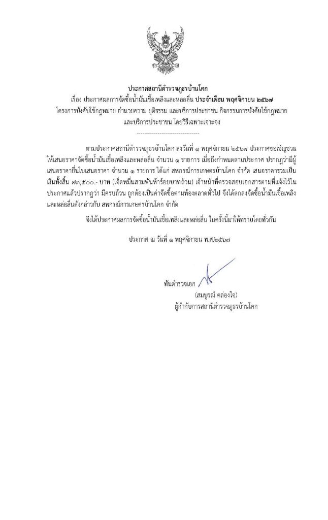 วันที่ 6 พฤศจิกายน พ.ศ.2567 เวลา 09.00 น. พ.ต.อ.สมบูรณ์ คล่องใจ ผกก.สภ.บ้านโคก มอบหมายให้ พ.ต.ต.ชัยร