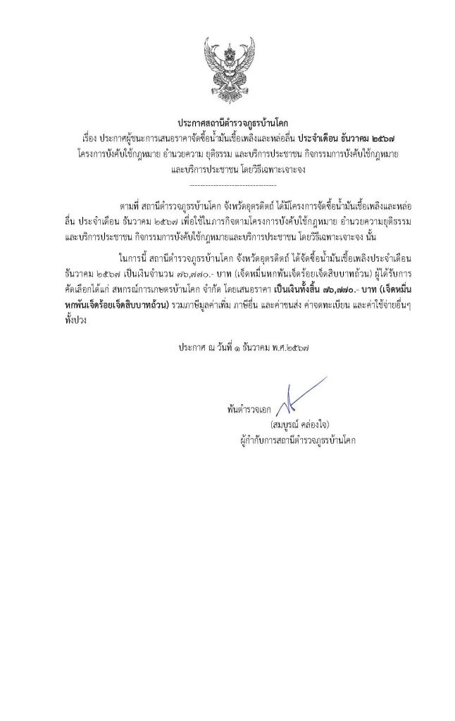 ประกาศการจัดซื้อจัดจ้างประจำเดือน ธันวาคม 2567