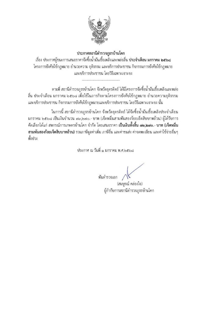 ประกาศการจัดซื้อจัดจ้างประจำเดือน มกราคม 2568