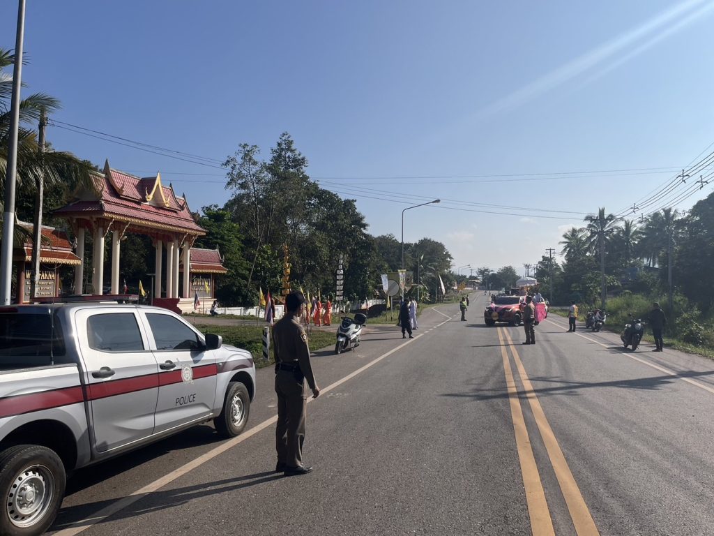 วันที่ 6 พฤศจิกายน พ.ศ.2567 เวลา 09.00 น. พ.ต.อ.สมบูรณ์ คล่องใจ ผกก.สภ.บ้านโคก มอบหมายให้ พ.ต.ต.ชัยรพ ไชยมา สวป.สภ.บ้านโคก พร้อมด้วย ร.ต.อ.คมสันต์ นุโพธิ์ ร้อยเวร 20 สายตรวจรถยนต์และจราจร 60 ปฏิบัติหน้าที่รถนำขบวนและอำนวยความสะดวกการจราจรในขบวนแห่งานกฐินสามัคคีทั่วไทย 30,000 วัด โดยคณะศิษยานุศิษย์ บูชาธรรม 80 ปี หลวงพ่อธัมมชัยโย ปี 2567 ณ วัดโพธิ์ชัยศรี ต.บ้านโคก อ.บ้านโคก จว.อุตรดิตถ์