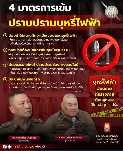 ด้วยปัจจุบันมีการแพร่ระบาดของบุหรี่ไฟฟ้าเพิ่มขึ้นอย่างรวดเร็ว โดยเฉพาะในกลุ่มของเด็ก และเยาวชนมีการใช้บุหรี่ไฟฟ้ากันอย่างแพร่หลาย มีช่องทางการจำหน่ายทางออนไลน์ที่สามารถซื้อขายได้ง่าย รัฐบาลจึงให้ความสำคัญในการปราบปรามบุหรี่ไฟฟ้า โดยให้ทุกหน่วยงานราชการดำเนินการบังคับใช้กฎหมายอย่างจริงจัง