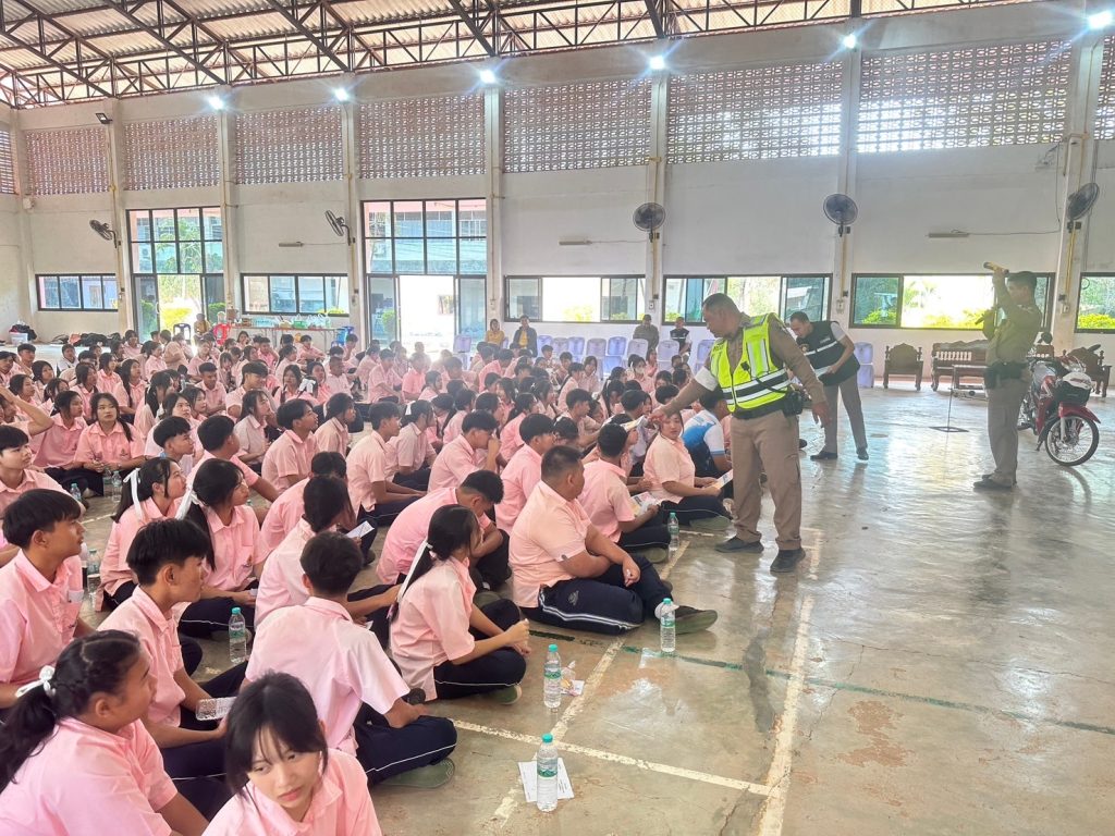 วันที่ 6 กุมภาพันธ์ พ.ศ.2568 เวลา 10.30 น. พ.ต.อ.สมบูรณ์ คล่องใจ ผกก.สภ.บ้านโคก มอบหมายให้ พ.ต.ต.ชัยรพ ไชยมา สวป.สภ.บ้านโคก พร้อมด้วย ร.ต.ต.นิรันดร จารี รอง สว.(ป.)สภ.บ้านโคก,สายตรวจรถยนต์ จนท.ชมส.และ เจ้าหน้าที่ตำรวจจราจร เข้าร่วมเปิดกิจกรรมและเป็นวิทยากร กิจกรรมพัฒนาวินัยจราจรและกฎหมายที่เกี่ยวข้องและประชาสัมพันธ์ “หนี ซ่อน สู้”/“ขับขี่ปลอดภัยใส่ใจทุกเส้นทาง“ ณ หอประชุมโรงเรียนบ้านโคกวิทยาคม