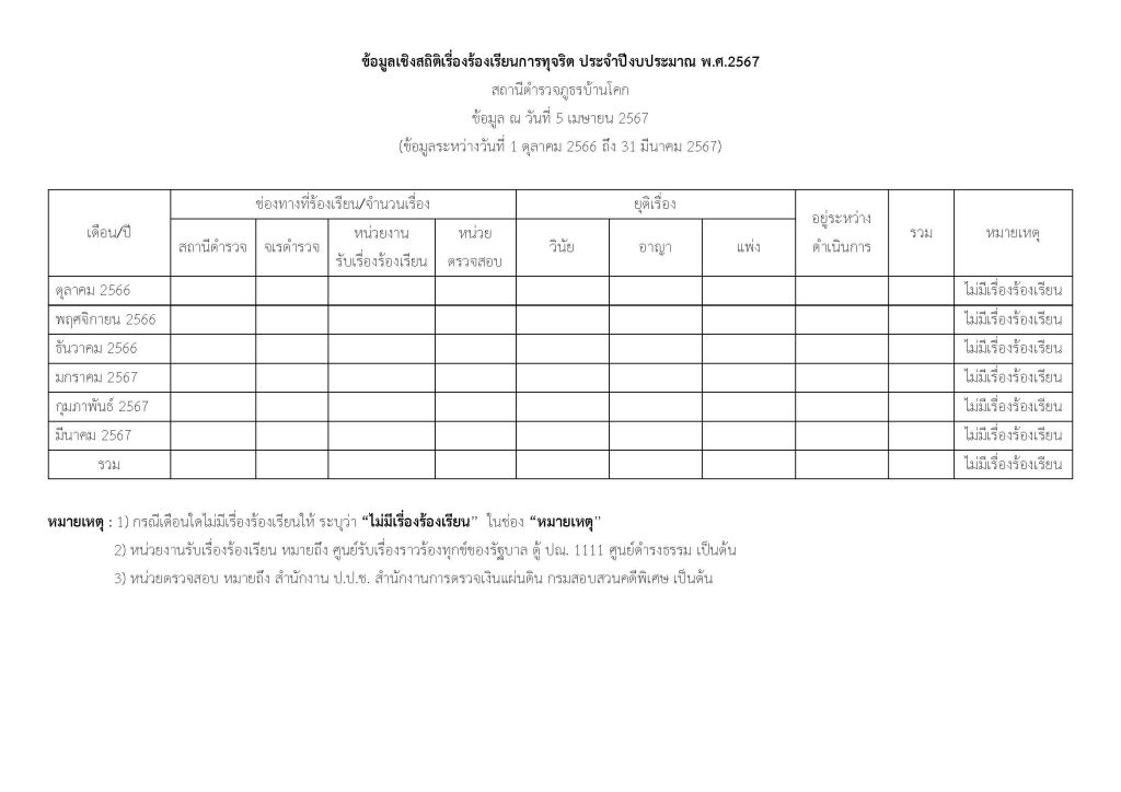 O17 ช่องทางการแจ้งเรื่องร้องเรียนการทุจริตและข้อมูลเชิงสถิติเรื่องร้องเรียนการทุจริต